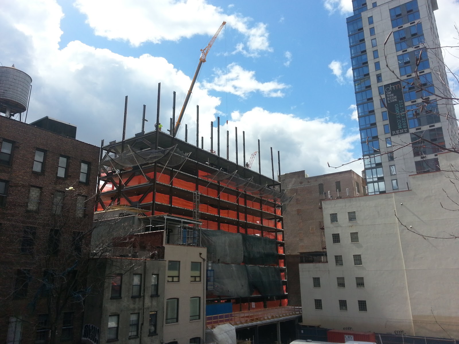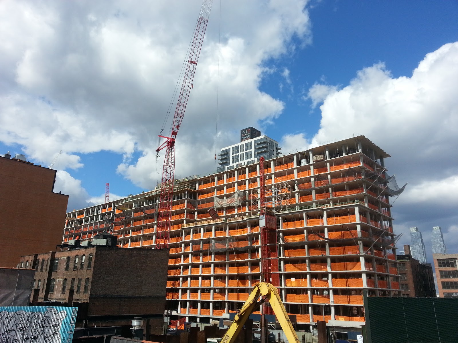 The Avalon West Chelsea has risen very quickly over the past month, though the project’s 30-story ‘tower’ is not yet obvious. The building is somewhat imposing when viewed from the High Line, but—fortunately—the ‘high-rise’ component will be adjacent to Eleventh Avenue. Judging the project’s lone rendering, it does seem that the mid-rise portion has topped-out.